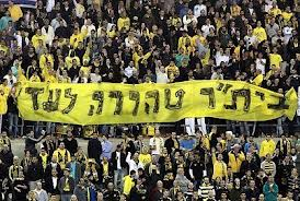 Recently, plans by Beitar Jerusalem soccer club to add its first Muslim players prompted violent and racist incidents in Israel. During a recent match between Beitar and a team from Umm El Fahm hundreds of police had to be deployed. Beitar Jerusalem fans held up the banner above(which reads “Beitar will remain pure forever”) which connotes very unpleasant references to “group purity” an attitude that Jews – at least most Jews – would like to forget. Beitar gets its name from the youth movement, linked to Herut the forerunner of Likud, which opposes Israel’s Arab neighbors. The team name symbolizes a position of honor in Israeli youth movements. Some Beitar fans lead chants calling the Arabs offensive names, which prompts the Arab teams to call out “Allahu akbar.” Some Israeli teams do include Arabs but not Beitar.