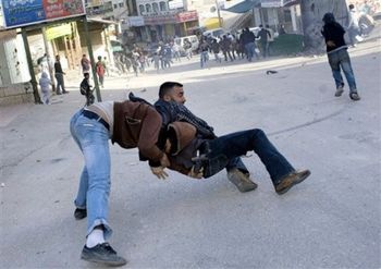 The two photos below represent different captions designed to frame the story in a particular manner. The first photo is from AP and was reported by Elder of Ziyon.
