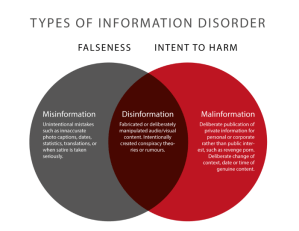 Fake news causes information disorder. It contaminates the news streams. Figure 1 represents three types of information disorder discussed by Wardle (2020). Fake news can be simply misinformation where the information problems are unintentional and characterized by mistakes and inaccuracies that were hard to avoid. Or, it can be somewhat more extreme and be disinformation which is increasingly nefarious because it is fabricated deliberately. Disinformation causes