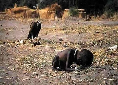 photograph taken by Kevin Carter in the Sudan in 1993. The girl was trying to